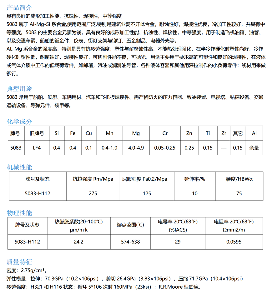 類 別:超強(qiáng)防銹鋁合金 鋁板品種:普通鋁板、拉絲鋁板、貼膜鋁板、超平鋁板、進(jìn)口鋁板.... 供貨狀態(tài):H111、H112、H116、H321、O... 厚 度:0.5mm-520mm 寬 度:1250/1500/1520/2000/2500mm 長(zhǎng) 度:2500/3000/4000/5000/6000/8000mm 價(jià) 格:電議 庫 存:大量現(xiàn)貨
