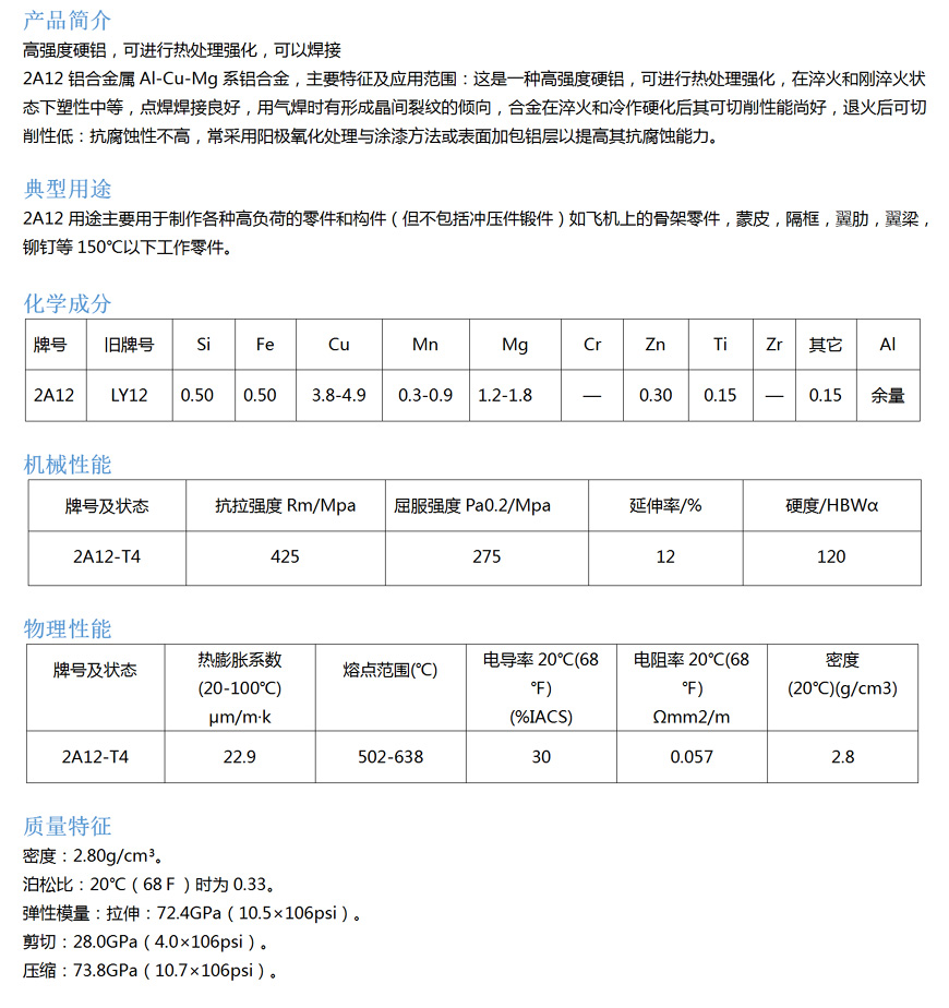 類(lèi) 別:航空硬鋁合金 鋁棒品種:普通鋁棒、精拉鋁棒、進(jìn)口鋁棒、磨光棒、鋁鍛件.... 供貨狀態(tài):H112、T4、T3、T451、T351、O... 圓 棒:Φ3mm-420mm 方 棒:高3~150mm*寬20~500mm 六角棒:S=6~50mm(對(duì)邊) 價(jià) 格:電議 庫(kù) 存:庫(kù)存充足